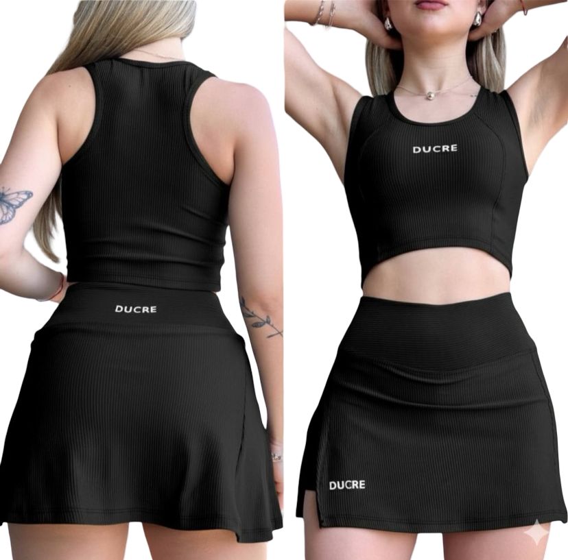Este conjunto es un básico imprescindible en tu guardarropa que combina la practicidad del short con la elegancia de la pollera, todo en un tejido suave y de calidad que se mantiene en forma lavado tras lavado.